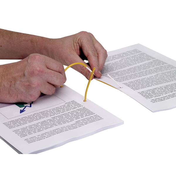 KANCELÁŘSKÁ TECHNIKA Třídílná, žluto-bílá plastová archivační spona Fellowes Tube pro svázání dokumentů a jejich následnou archivaci. Odolná a ohebná archivační spona umožňující rychlé přidávání nebo odebírání listů, tak snadno jako v pořadači. Konstrukce sponky umožňuje kopírování dokumentů bez rozepínání a vytahování listů, stačí pouze uvolnit.