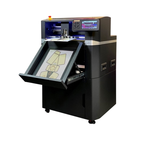 Nový unikátní typ automatického řezacího plotru kombinuje digitální řeznou hlavu s dvojitým nástrojem pro souběžné ploché řezání a rýhování a automatické vzduchové podávání archů. Je vybaven 2 nástroji, impozantním aktivním tangenciálním rýhovacím kolečkem s přítlakem až 2,5kg a pasivním taženým řezacím nožem s přítlakem až 1kg. Je ideální pro digitální tvarový výsek obalů, P.O.S. materiálů, stejně tak jako pro výsek archových etiket, a to bez nutnosti investic do nákladných výsekových matric. To vše v precizně zkonstruovaném, kompaktním, samostatně stojícím provedení.