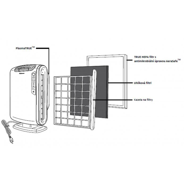 - Technologie PlasmaTRUE™ - v konečné fázi čištění vytváří technologie Fellowes® PlasmaTRUE™ ionizované pole, které pomáhá bezpečně odstranit zbylé znečišťující látky ze vzduchu.