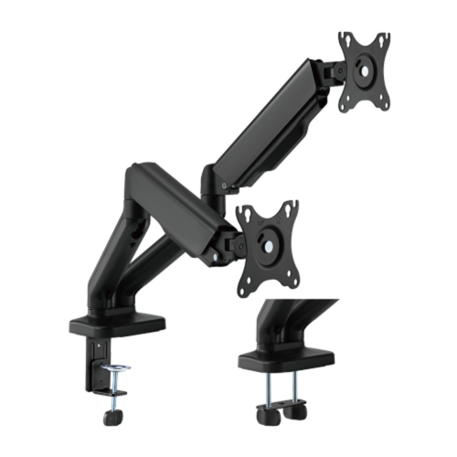 Díky odolné ocelové konstrukci poskytuje stabilní podporu pro dva monitory s úhlopříčkou 17" až 32" a hmotností až 9 kg na rameno. Flexibilní konstrukce pro dostatečné nastavení výšky a pozorovacích úhlů s možností nastavení orientace monitoru na výšku nebo na šířku. Součástí balení jsou průchodky a svorky pro instalaci na téměř jakoukoliv pracovní plochu. Odnímatelná deska VESA pro uživatelsky přívětivou instalaci.