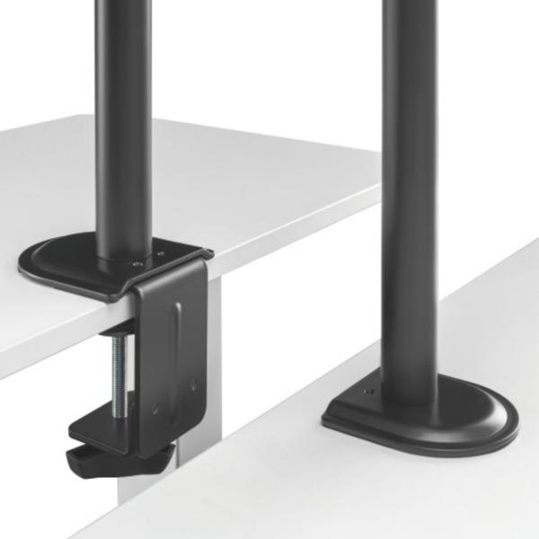 Díky odolné ocelové konstrukci poskytuje stabilní podporu pro jeden monitor s úhlopříčkou 17" až 32" a hmotností až 9 kg. Flexibilní konstrukce pro dostatečné nastavení výšky a pozorovacích úhlů s možností nastavení orientace monitoru na výšku nebo na šířku. Součástí balení jsou průchodky a svorky pro instalaci na téměř jakoukoliv pracovní plochu. Odnímatelná deska VESA pro uživatelsky přívětivou instalaci. Součástí balení jsou kabelové spony pro usnadnění organizace vedení kabelů.