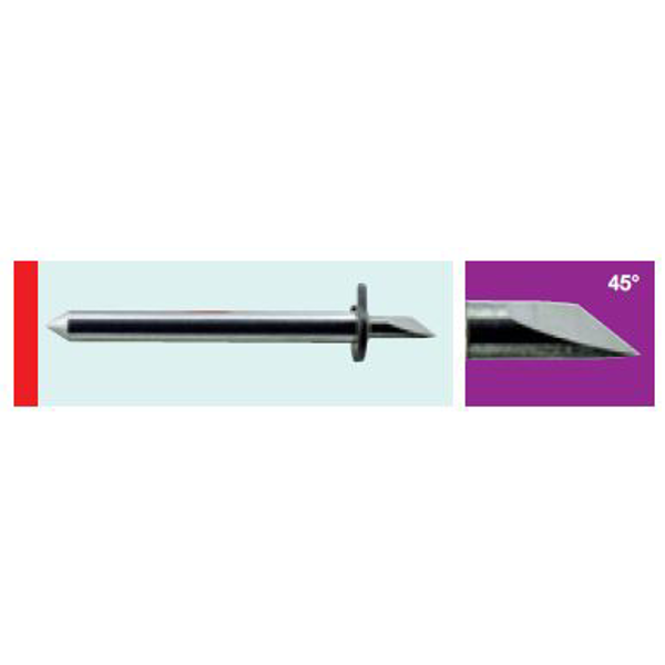 KANCELÁŘSKÁ TECHNIKA Řezací nůž s přítlačným kroužkem (červený), průměr 1,4 mm, úhel ostří 45°, materiál slinutý karbid. Vhodný pro řezání většiny obalových kartonů do 500 mikronů. Kroužek zajišťuje lepší přítlak a lepší změny směru při řezání tužších médií o tloušťce od 0,25 do 0,50 mm. Určen pro automatický řezací plotr Intec ColorCut SC5000 a pro všechny modely deskových řezacích plotrů Intec ColorCut (FB550, FB750, FB1175, FB9000).