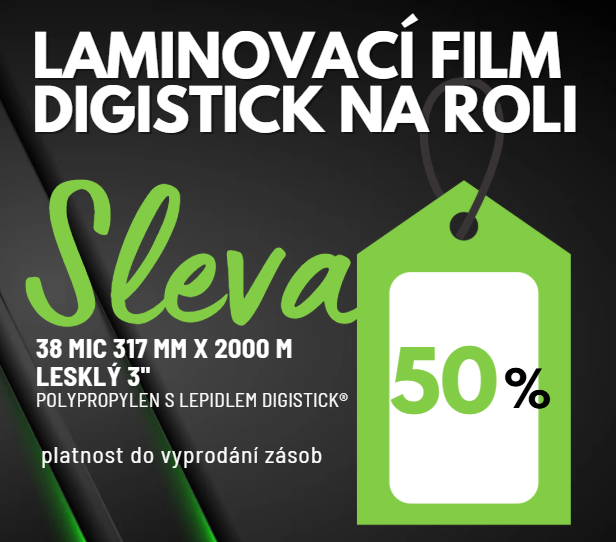 Lesklý termolaminovací polypropylenový (BOPP) film s lepidlem DigiStick má výbornou adhezi. Velmi odolné v ohybu. Perfektní přilnavost při řezu a rýhování. Není vhodný pro automatickou separaci archů!
