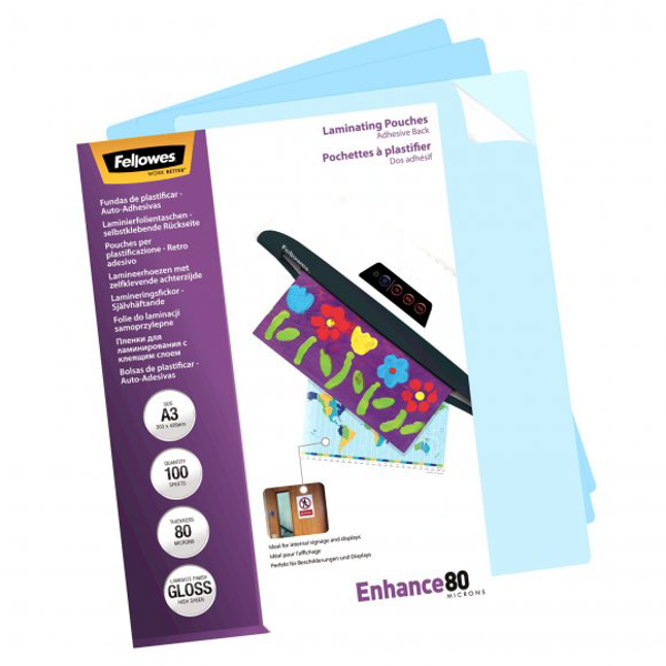 Enhance80. Samolepící zadní strana. Zalaminovaný dokument lze nalepit na libovolnou hladkou plochu. Laminování zkrášlí a zvýrazní barevnost a celkový vzhled vašich dokumentů. Poskytne ochranu proti nečistotám, vlhkosti a prodlouží životnost.