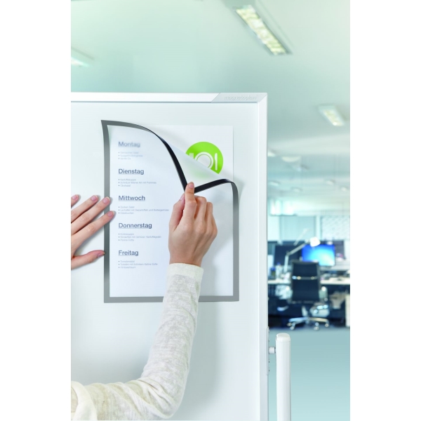 KANCELÁŘSKÁ TECHNIKA Magnetický rámeček Magnetofix, zvýrazní dokument. Pro formát velikosti A3 tj. 297x420 mm. Matný antireflexní povrch průsvitné fólie. Šířka barevného rámečku 9 mm. Lze je flexibilně používat k pravidelné výměně dokumentů. Lze použít ve formátu na výšku i na šířku. Materiál: polypropylen (PP).