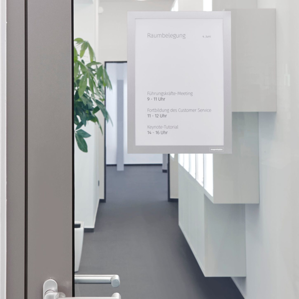 Vhodné pro provozní informace v kancelářích, skladech, obchodech, výrobních provozech...Pod rámečkem vložený dokument lze velmi snadno vyměnit. Zvedněte jeden roh - vyměňte dokument - uhlaďte - HOTOVO!