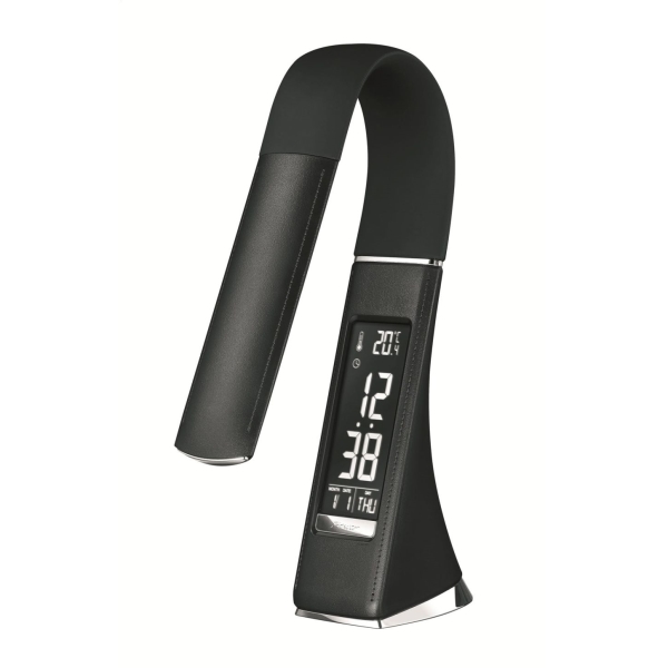 Ovládání je řešeno pomocí dotykového vypínače, pomocí kterého si snadno nastavíte intenzitu světla podle aktuální potřeby. Praktickým doplňkem je integrovaný LCD displej, který zobrazuje čas, kalendář i teplotu v místnosti. Tlačítka pro nastavení kalendáře jsou diskrétně umístěna na spodní straně lampy, takže nenarušují čistý vzhled.