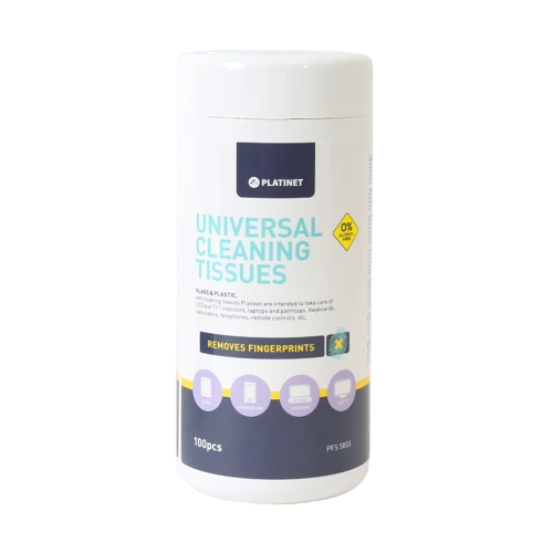 KANCELÁŘSKÁ TECHNIKA Univerzální vlhčené čistící ubrousky jsou určeny pro péči o LED a LCD displeje, TFT monitory, notebooky, klávesnice a další skleněné a plastové prvky elektronických zařízení. Antistatický a antibakteriální účinek. Neobsahuje žádný alkohol. Nehořlavé. Trvanlivost: neotevřené vydrží ve stejné kvalitě cca 30 měsíců. Obsah 100ks ubrousků.