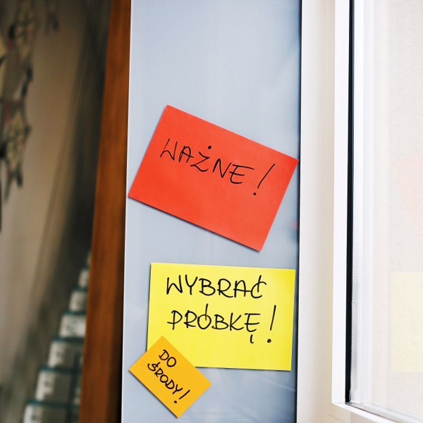 • Napište cokoliv, přiložte na jakýkoliv povrch v interiéru (zeď, dřevo, sklo, kov, plast, beton…), jednoduše posouvejte a opakovaně přemisťujte bez zanechání zbytků lepidla nebo poškození povrchu.
