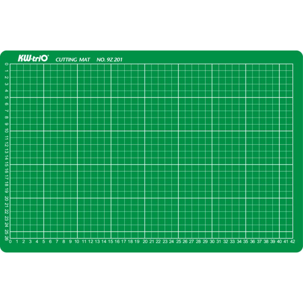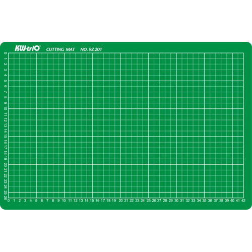 Měkká povrchová vrstva podložky zároveň chrání ostrost nože. Provedení zelená, s antireflexním matným povrchem, tisk základním rastrem s měřítkem.
