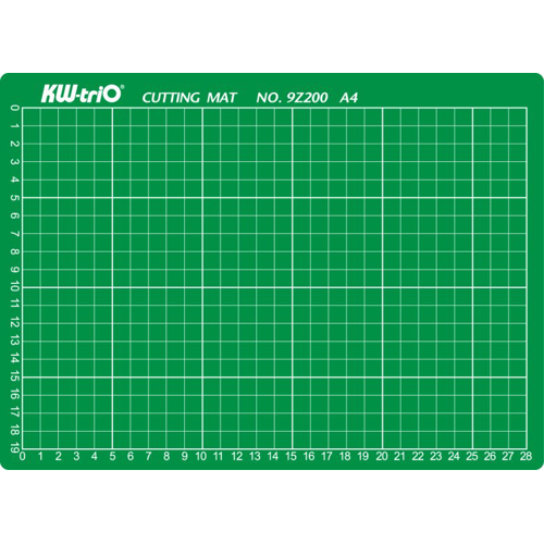 Měkká povrchová vrstva podložky zároveň chrání ostrost nože. Provedení zelená, s antireflexním matným povrchem, tisk základním rastrem s měřítkem.