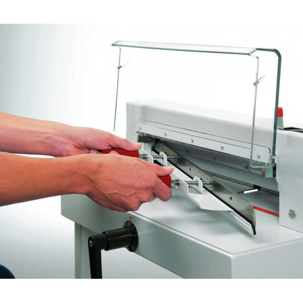 - snadná a bezpečná výměna nože z přední strany bez nutnosti sundání krytů řezačky