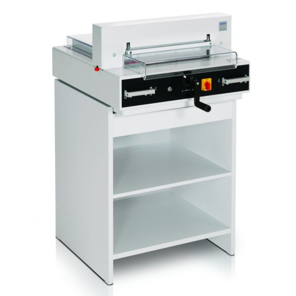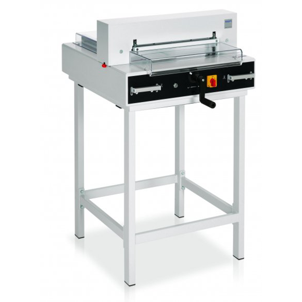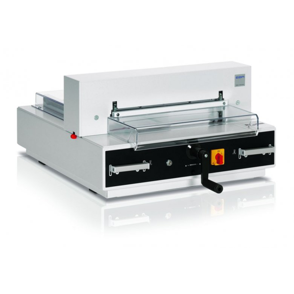 Pohodlné řezání do formátu A3, automatický lis, délka řezu 430 mm, hloubka vložení stohu 435 mm, výška stohu 40 mm.