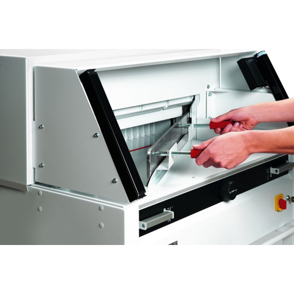 snadná a bezpečná výměna nože z přední strany bez nutnosti sundání krytů řezačky