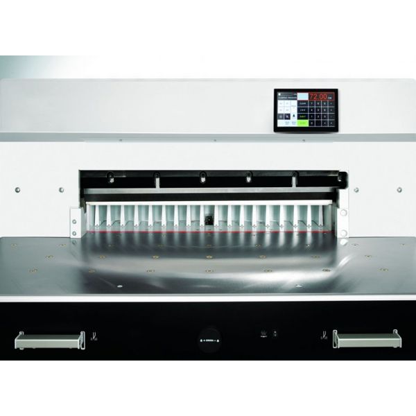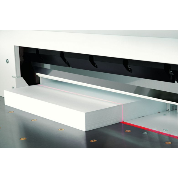 Profesionální řezačka s hydraulickým lisem, optickou bezpečnostní závorou a provzdušňováním předního i zadního stolu.