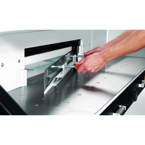 snadná a bezpečná výměna nože z přední strany bez nutnosti sundání krytů řezačky,