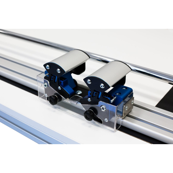 Je vybavena dvojitou ergonomickou řeznou hlavou s dvěma typy vyměnitelných čepelí s nastavitelnou hloubkou řezání a maximální tloušťkou řezaného materiálu 15 mm (PU a PVC desky, lepenky, vinyl, fólie, papír aj.). Řezačka může být umístěna na podložce nebo přímo na řezaném materiálu.