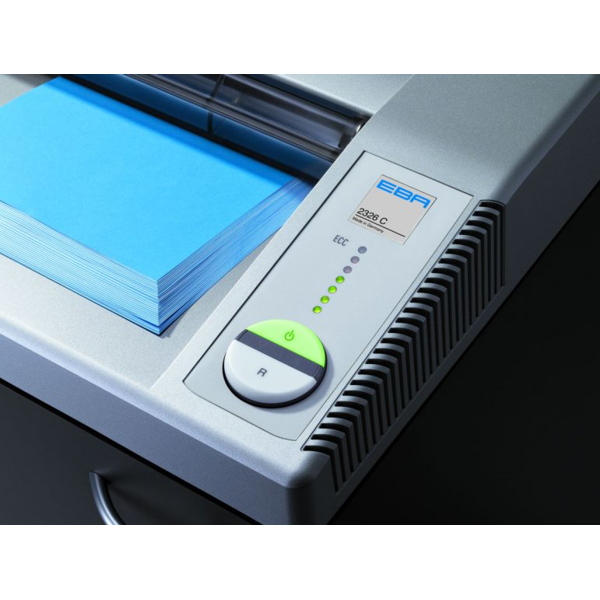 Robustní kancelářská skartovačka se vstupní šířkou 260 mm, vhodný pro stálý provoz, pro skartaci dokumentů i účetních dokladů. Kontrolní světelná indikace aktuálního zatížení ECC, velký objem odpadního koše 100 L.