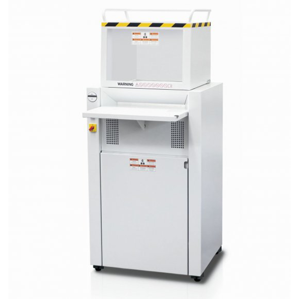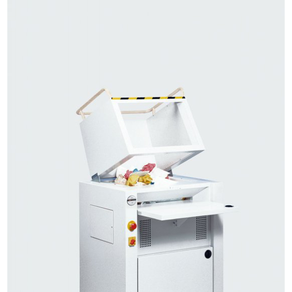 Výkonný skartovač pro velkokapacitní skartaci na částice velikosti 2 x 15 mm. Díky násypnému trychtýři lze skartovat i neuspořádaný nebo zmačkaný papír.