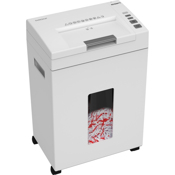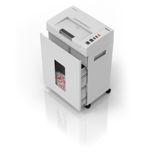KANCELÁŘSKÁ TECHNIKA Tento výkonný skartovací stroj s automatickým podavačem je ideální pro velké kanceláře. Dokáže automaticky skartovat až 150 volných listů ze zásobníku na částice o velikosti 4 x 10 mm. Vstupní šířka činí 220 mm a stroj je schopen skartace volných nebo sešitých papírů, stejně jako plastových karet. Disponuje košem o objemu 21 litrů, což odpovídá orientačnímu množství 380 skartovaných listů formátu A4. Navíc je vybaven vstupem pro ruční vkládání, který umožňuje najednou skartovat až 8 listů papíru o gramáži 80 g.
