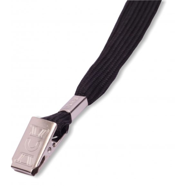 Šňůrka na krk s klipsem pro uchycení visačky. Lze použít na visačku s vyděrovaným podélným otvorem nebo se závěsem. Šířka 10 mm, délka 900 mm (2x450 mm).