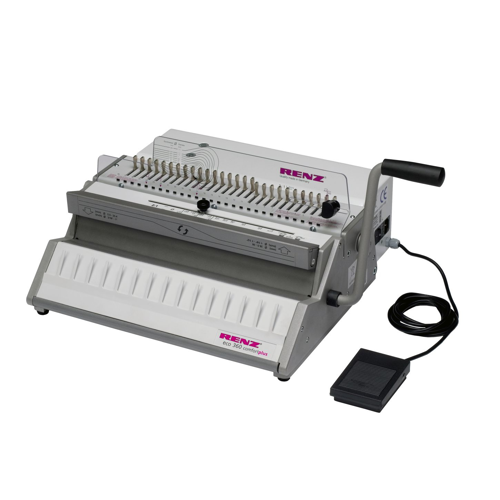 Robustní vázací a děrovací stroj s perforací 2/1". Elektrický pohon děrovacího nástroje. Určen pro vazbu do kovových hřbetů s roztečí ok 2/1" (6,9 mm - 38 mm).