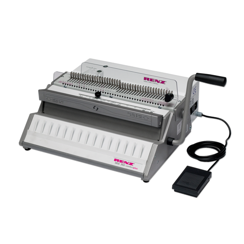Komfortní vazač s elektrickým pohonem, perforace 3/1" (5,5 mm - 16 mm). Děrování na jeden cyklus cca 22 listů 80g papíru. Děruje hranaté otvory 4x4 mm. Nožní spouštěč.