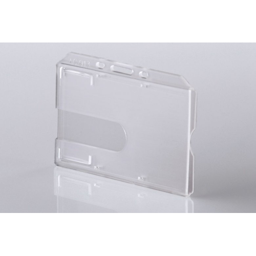 Tuhá plastová visačka pro magnetické karty - vodorovná, provedení z průhledného polomatného plastu. Výhodou visačky je výsek pro snadné čtení kódu, má zaoblené hrany. Možno zavěsit na klips se šlí (v našem sortimentu klips Americký, nebo klips Evropský), šňůrku nebo naviják. Oválný výsek pro zavěšení 15x3 mm + dva kulaté výseky. Vnější velikost: výška 63 mm x šířka 90 mm x hloubka 4 mm.