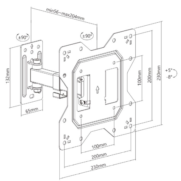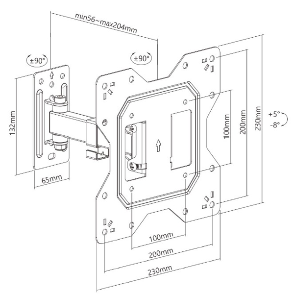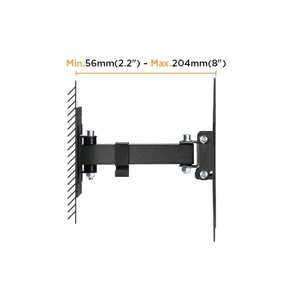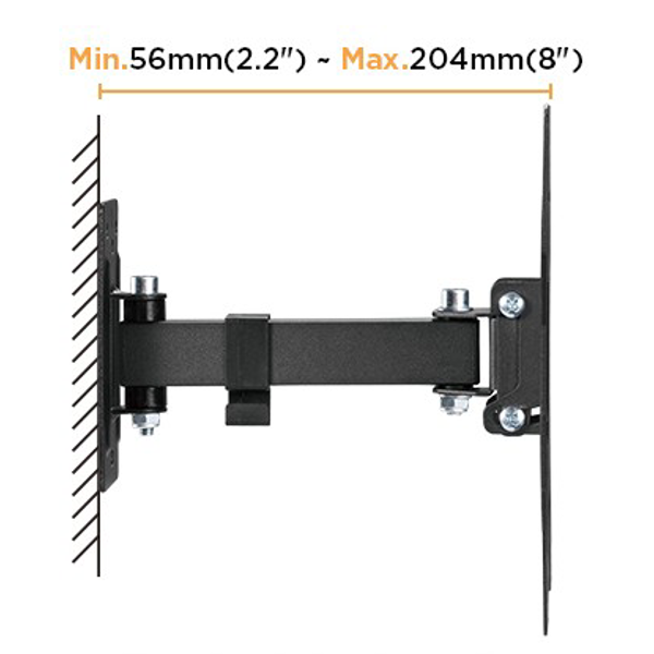 KANCELÁŘSKÁ TECHNIKA Výsuvný nástěnný držák LPA68-221 je určen pro instalaci TV s plochou obrazovkou s úhlopříčkami od 23“ do 43“. Má robustní výsuvnou konstrukci, díky níž unese TV o hmotnosti až 30 kg, zároveň je možné nastavit vzdálenost TV od stěny v rozsahu 56 mm až 204 mm. Samozřejmostí je pak také velký rozsah polohování. Držák umožňuje snadné naklápění TV v rozsahu +5°~-8° a natočení do stran v rozsahu +90°~-90°, což zaručuje pohodlné sledování z libovolného místa v místnosti. Integrovaná svorka na kabely udržuje kabely uspořádané a chráněné.